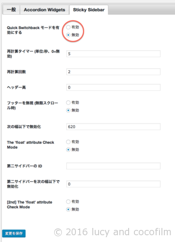 次に「Sticky Sidebar」タブ