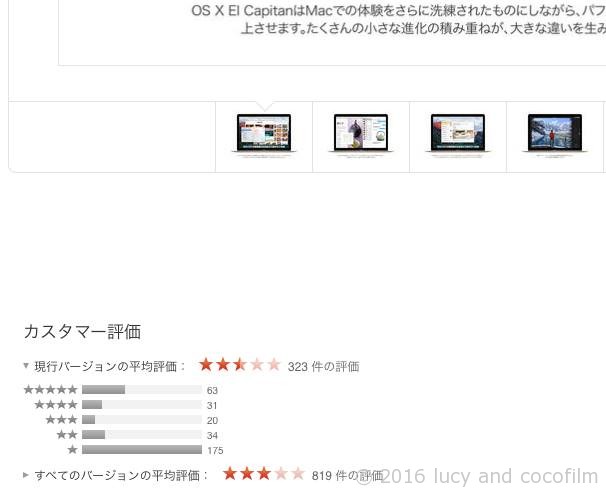 El Capitanのときのカスタマー評価がひどいのでスクリーンショットを撮っておいのがこちら。